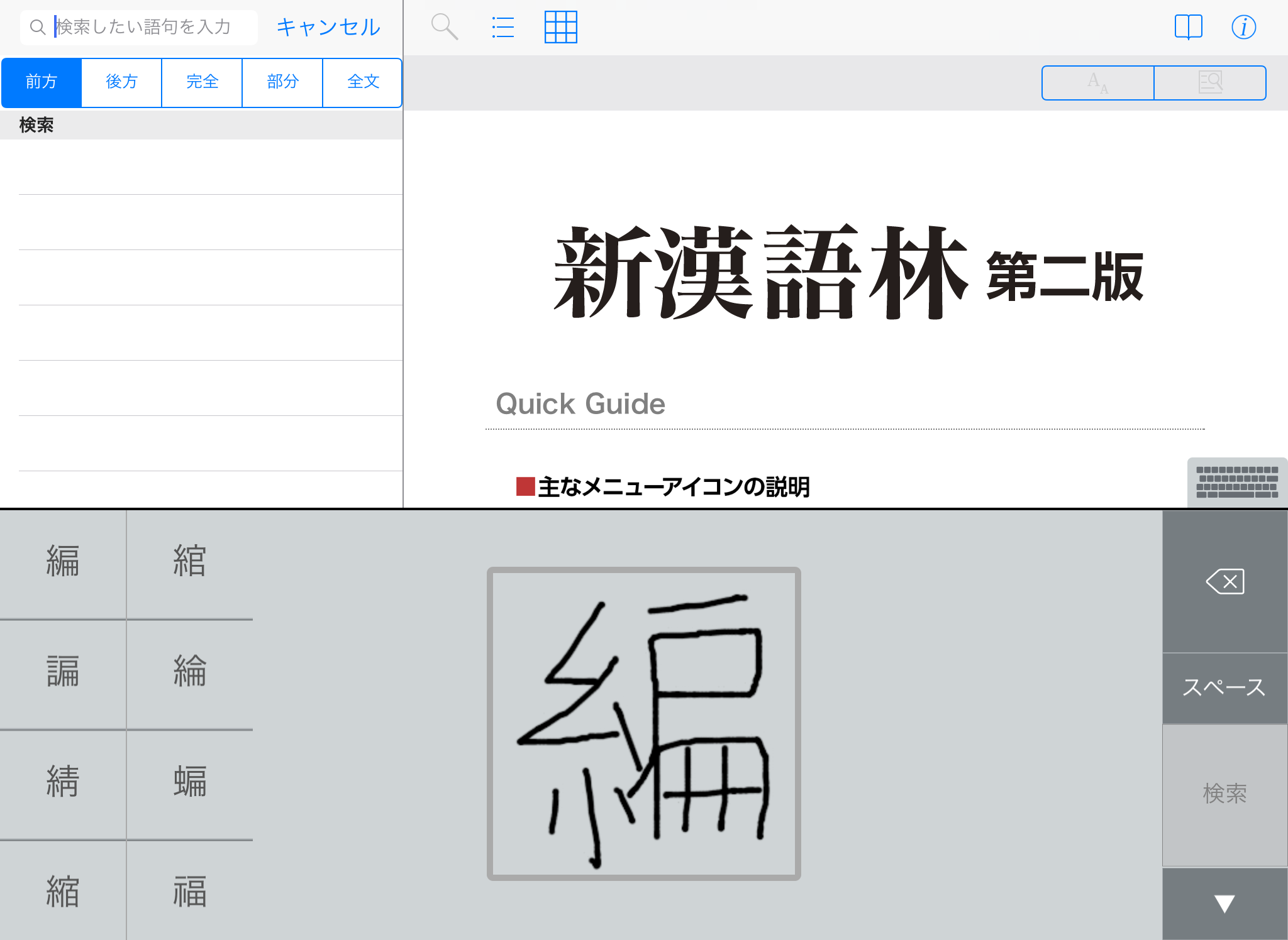 ● 文字を入力すると候補見出し語が表示されるので、うろ覚えでも見つけやすい