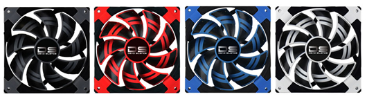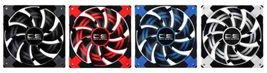4つのLEDを搭載しています。レッド、ブルー、ホワイトそれぞれのLEDが色鮮やかにファンブレードを演出します。※14cm DS Black、12cm DS BlackにはLEDはありません