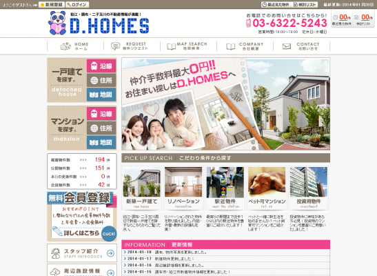 この度『株式会社ディークラウド』が運営するホームページは、"仲介手数料最大0円!!お住まい探しはD.HOMESへ"をコンセプトに、狛江、調布、二子玉川エリアを中心に売買物件情報を扱うホームページとなっております。