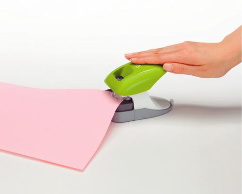 針を使わず、紙を折り込んで書類をとじる針なしホッチキス「ペーパークリンチ」。金属針を使わない安心感と、針補充・分別の手間がない便利さで、小さな子どもがいるご家庭から、オフィス、工場、小売店等で、幅広くご利用いただいています。