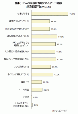 図表参照:【図1】「こんな同僚は尊敬できる」という態度(n=1,137)