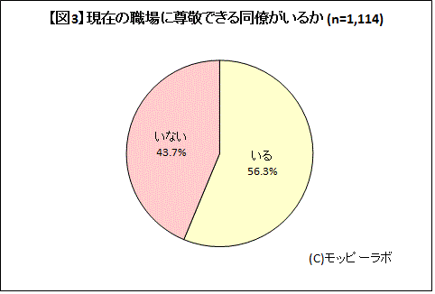 図表参照:【図3】現在の職場に尊敬できる同僚がいるか(n=1,114)