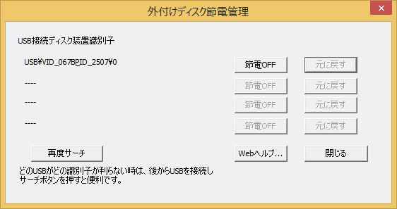 自動監視の場合は、USBの接続を自動認識し、そのUSBがスリープしないように自動設定します。