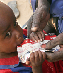 栄養失調と飢餓によって毎年100万人以上の子供たちの命が奪われています。また、それより多くの子供たちが肉体的、精神的な成長を阻害されています。重篤な急性栄養失調は、これまで入院が必要とされてきました。しかし栄養補助食品はパッケージを開ければすぐに食べられるので、水を加えなくても子供たちに与えることが可能です。そのため、家にいるときを含めどのような状況でも医師の立ち会い不要で摂取することができます。