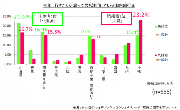 ■「既婚者に人気の沖縄、未婚者に人気の北海道」