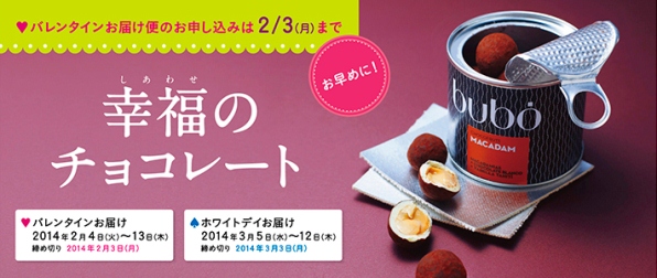 バレンタインお届け時期 2014年2月4日(火)~13日(木)