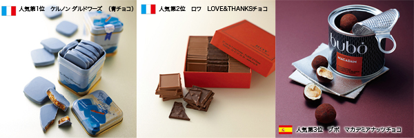 株式会社フェリシモは、世界15カ国のレアチョコレートを『幸福のチョコレート』サイトにて販売中です。2013年11月14日~2014年1月28日までの予約状況から、今年の人気ベスト5チョコを発表いたします。2012年からNO.1人気の青チョコを筆頭に、日本初上陸の赤チョコ、インコチョコが今年はランクインしました。『幸福のチョコレート』は2月3日までバレンタイン予約受付中です。