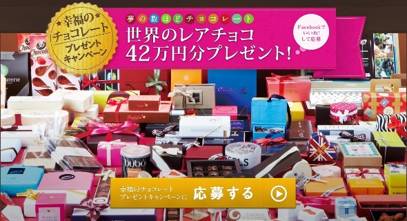 ※『幸福のチョコレート』では、「夢の数ほどチョコレート 世界のレアチョコ42万円分プレゼントキャンペーン」も実施中です