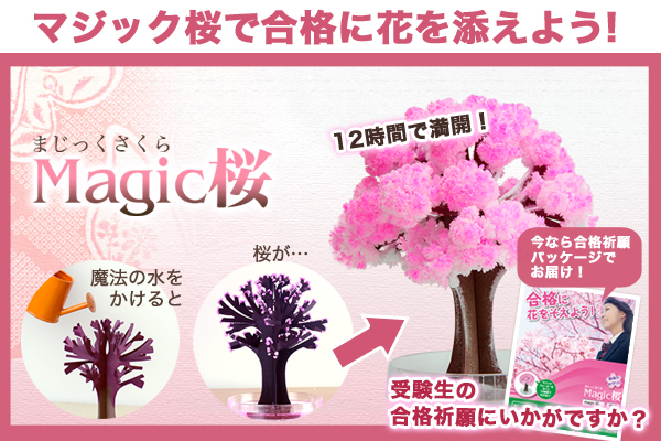 合格祈願や、受験の合格にマジック桜で花を添えましょう!あなたの桜も咲くように・・・