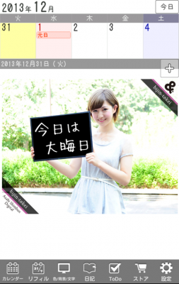 (*日めくりカレンダーのウィジェットでの表示は 1.7.2以上)