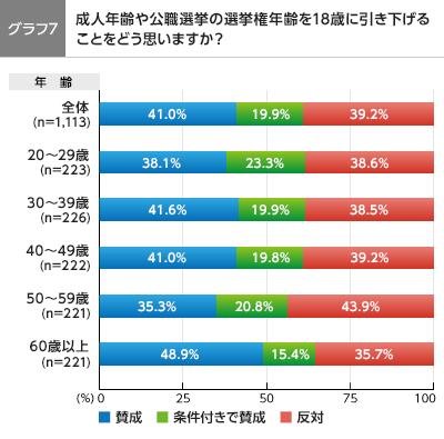 Q7:成人年齢や選挙権年齢を18歳に引き下げることをどう思いますか?