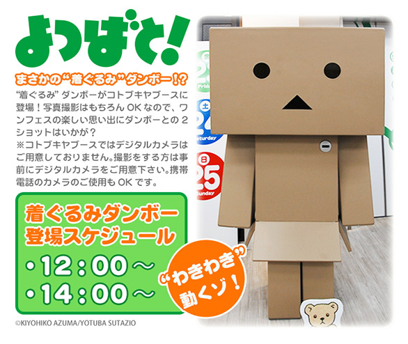 “着ぐるみダンボー”が今回もコトブキヤブースに登場!登場時間は1回目12:00~/2回目14:00~の2回になります。写真撮影はもちろんOKなので、ワンフェスの楽しい思い出にダンボーとの2ショット写真をどうぞ。