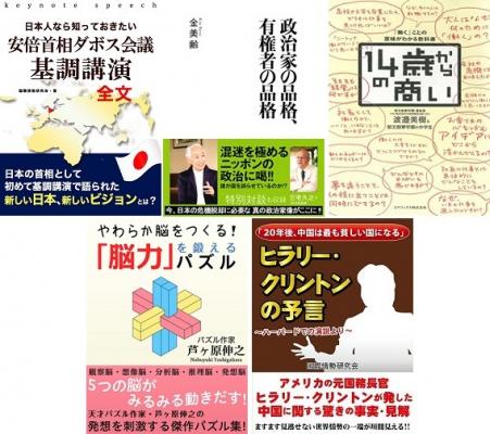 ゴマブックス株式会社(所在地:東京都港区、代表取締役社長:赤井仁)は2月3日(月)、Yahoo!ブックストアにて電子書籍『日本人なら知っておきたい 安倍首相 ダボス会議基調講演全文』『14歳からの商い』『政治家の品格、有権者の品格』『「20年後、中国は最も貧しい国になる 」 ヒラリー・クリントンの予言』『「脳力」を鍛えるパズル』の5作品の配信を開始したことを発表します。