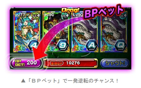 バトル中に獲得したBPをベットして役勝負に勝つと、ベットしたBPが2倍になって加算されます。