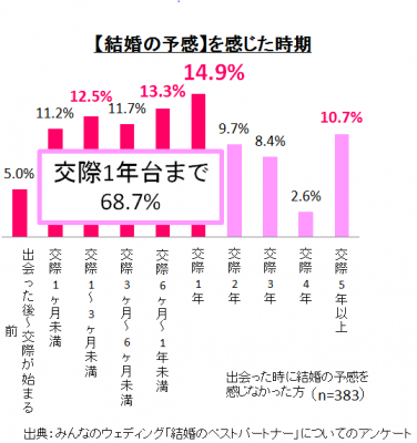 ■【結婚の予感】を感じた時期~68.7%が「出会ってから交際1年まで」と回答~