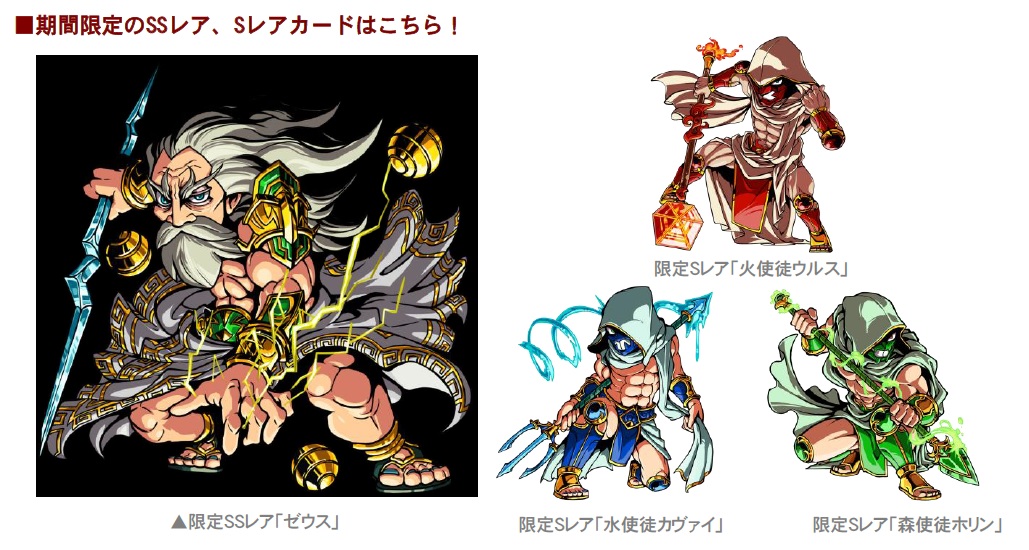 ■ドラゴンメダル交換所に、限定SSレア「ゼウス」と限定Sレア「使徒」が期間限定で登場!