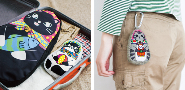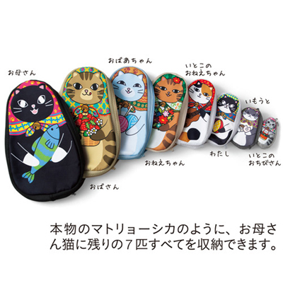 「キャリーバッグ開けて、猫が寝ていたら……。面白いだろうな、しかも、マトリョーシカのように次々と猫が出てきたら!」という担当者のひらめきから生まれました。かわいいだけではなく実用性にもこだわり、洋服を詰めるのに便利な大サイズから小物入れに便利な小サイズまでそろえました。