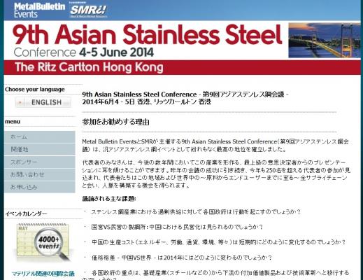 Metal Bulletin EventsとSMRが主催する9th Asian Stainless Steel Conference(第9回アジアステンレス鋼会議)は、汎アジアステンレス鋼イベントとして紛れもなく最高の地位を確立しました。