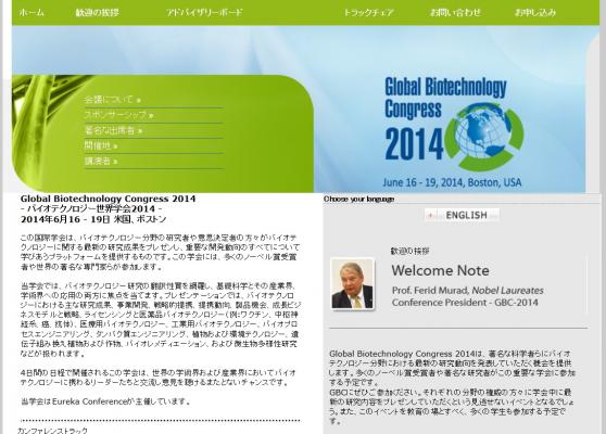 学会:「Global Biotechnology Congress 2014-バイオテクノロジー世界学会 2014」