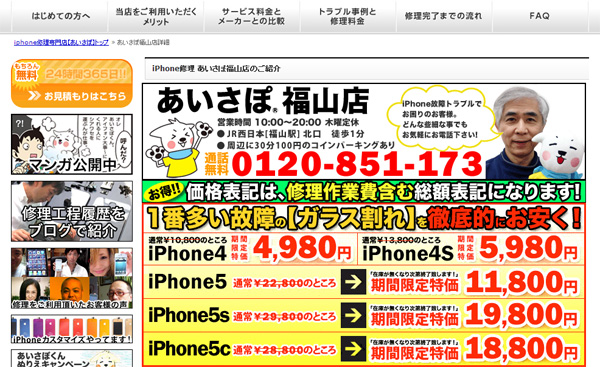 iPhone修理あいさぽ福山店直通フリーダイヤル:0120-851-173