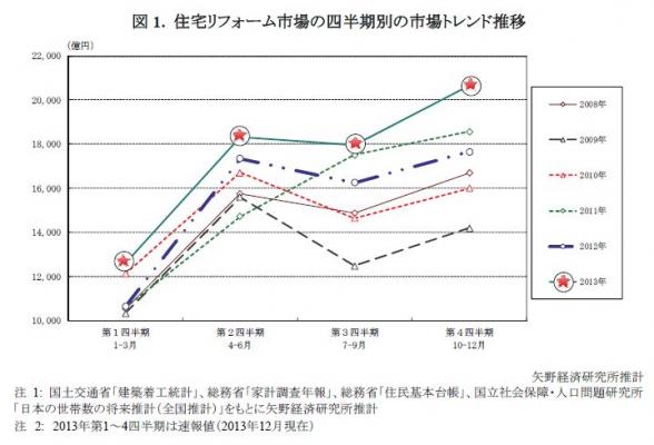 ◆ 2013年第4四半期の住宅リフォーム市場規模は前年同期比17.0%増