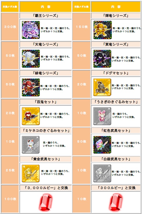 本大会報酬「ドラゴンメダル」は、一定数集めれば好きな武具と交換できます!