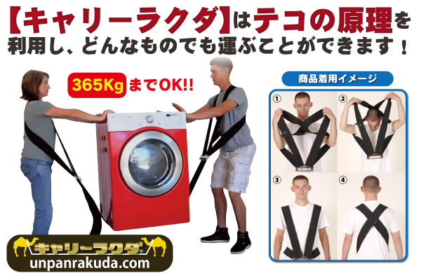 自力ではとても動かせないような洗濯機・大型家具などを、テコの原理を利用して2人でラクラク運ぶことができるのだ。
