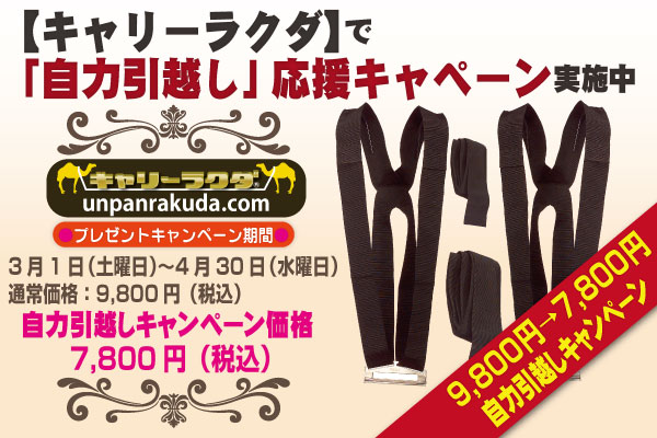 【キャリーラクダ】(http://www.unpanrakuda.com/)の自力引越応援キャペーンを実施中です!