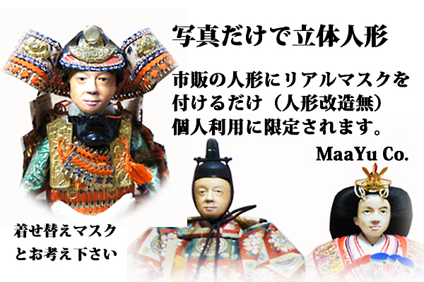 (注)画像や動画・CG等ではなく、「本物の人形」につける立体のお面です。