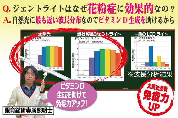 Q:それが目に優しいライトと言われるゆえんですね、でも花粉症にも効くというのは?