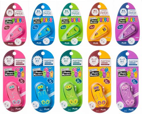 プラス株式会社(東京都港区 代表取締役社長:今泉公二)は、カラフル&ポップなモンスター柄を人気文具「ノリノ ビーンズ」「ホワイパープチ」の本体ケースに採用した限定デザイン第2弾「数量限定 ハッピーモンスター柄」各5種類を2014年4月1日に発売します。