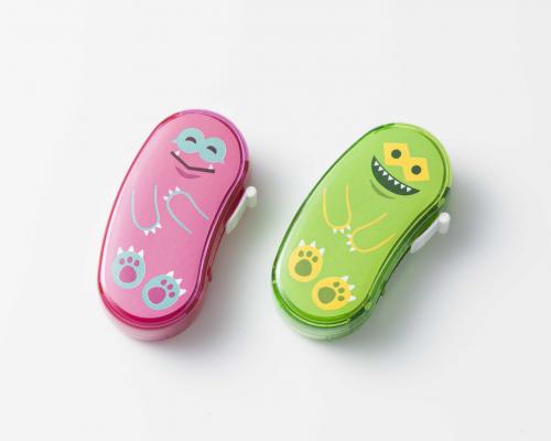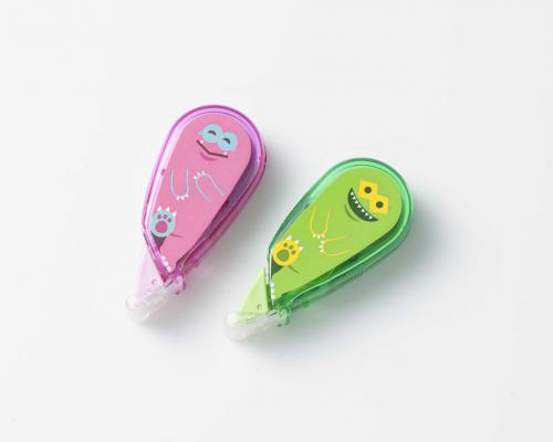 使いやすさとペンポーチに入るミニサイズで人気の定番文具、テープのり「ノリノ ビーンズ」と修正テープ「ホワイパープチ」。2013年10月に柄の楽しさをプラスした限定デザイン「ハッピー柄」(※)各5種類を発売したところ、女子中高生を中心に大好評を頂戴しました。そこで今回第2弾では、アメコミの世界から飛び出してきたような“ハッピーモンスター柄”が登場します!