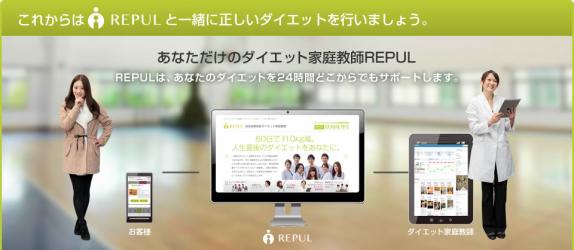 REPUL は日本全国どこでも専用アプリや電話・Skype を活用し、栄養や運動だけでなく、メンタル面からのサポートをダイエットに精通した家庭教師から受ける事ができるサービスです。