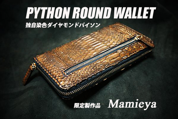ユニセックスで男女兼用の存在感あるダイヤモンドパイソン・ラウンドウォレットです。