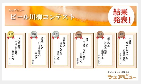 「ビール川柳コンテスト」投票結果: http://shareview.jp/add/beer/contest1402.html