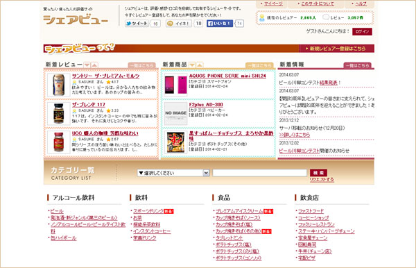 「シェアビュー」は、マーケィングリサーチサービスを提供する(株)マーシュにより、生活者の本当の声・クチコミを発信、共有するレビューサイトとして2011年3月7日にオープンしました。2014年3月1日現在でレビュアー会員は2,865名、掲載レビュー数は3,057件となっています。アルコール飲料、食品、飲食店などの登録されたカテゴリにおいてレビュアー会員による投稿を少しずつ増やしながら、2012年にはビールをテーマとしたフォトコンテストを初開催し、2013年には2回目のフォトコンテストとビール川柳コンテストを開催しました。
