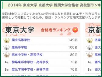 その他、京大や早慶上理、ICU、東工大などのランキングも掲載しており、その高校別の2014年度の結果を知ることができます。