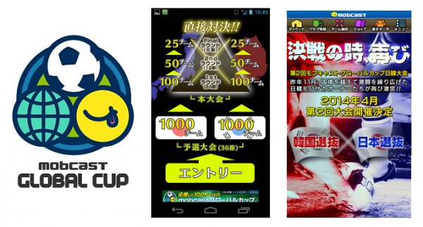 「mobcastグローバルカップ」とは、単に他のユーザーにゲームで勝つという次元から、世界大会というゲームを通じて、自分が所属する地域・社会・国家・民族の代表として競い合う、負けず嫌いの究極的な勝負の場です。mobcastが誇る人気モバイルオンラインサッカーゲーム「モバサカ」では、4月に日本と韓国のユーザーが対決する第二回MGC日韓戦を開催。またMGC(mobcastグローバルカップ)世界大会が25か国で、6月に予定されております。