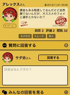 スマートフォンの特性である、常時接続・インタラクティブ性を前面に生かし、リアルタイムにユーザー間で共有できるQ&Aサービスとなっています。ゲームプレー中に中断することなく質問ができ、質問の返答を確認しながらプレーすることが可能です。