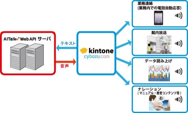 サイボウズ株式会社(本社:東京都文京区、代表取締役社長:青野 慶久)と株式会社エーアイ(本社:東京都文京区、代表取締役社長:吉田 大介、以下エーアイ)は、サイボウズが提供する業務アプリ構築クラウド「kintone」とエーアイが提供する高品質音声合成エンジン「AITalk(R)」が、2014年3月より連携することを発表いたします。kintone上のテキストデータをAITalk(R)で合成し、音声にて読み上げます。