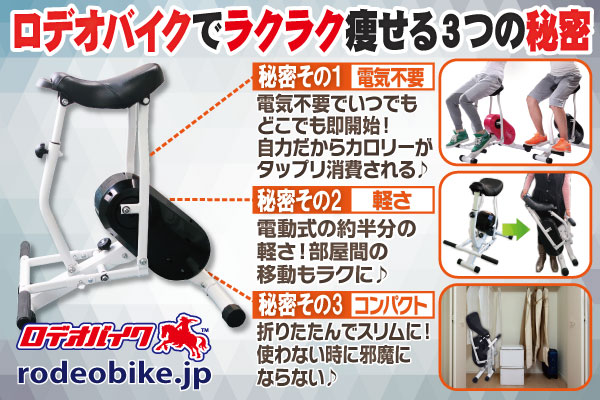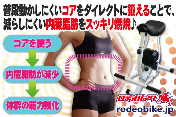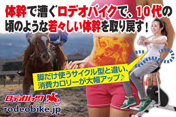 【ロデオバイク】(http://www.rodeobike.jp)は、脚だけでなく体幹を使うエクササイズだから、使う筋肉の量がちがいます。