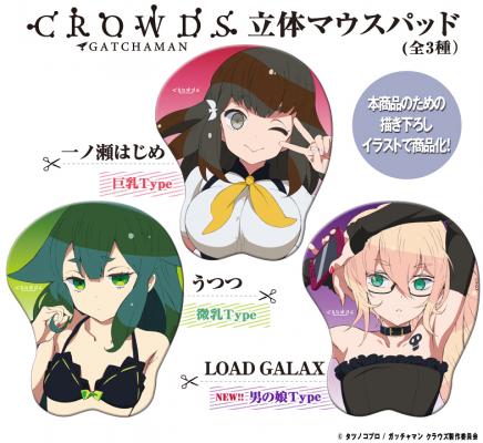 本商品のための描き下ろしイラストを商品化。はじめ、うつつの魅惑のバスト部分をふにっとやわらかく立体再現しました。さらに今回は、天才少年LOAD GALAXも衝撃のラインナップ!業界初となる“男の娘”タイプの立体マウスパッドをお届けします。
