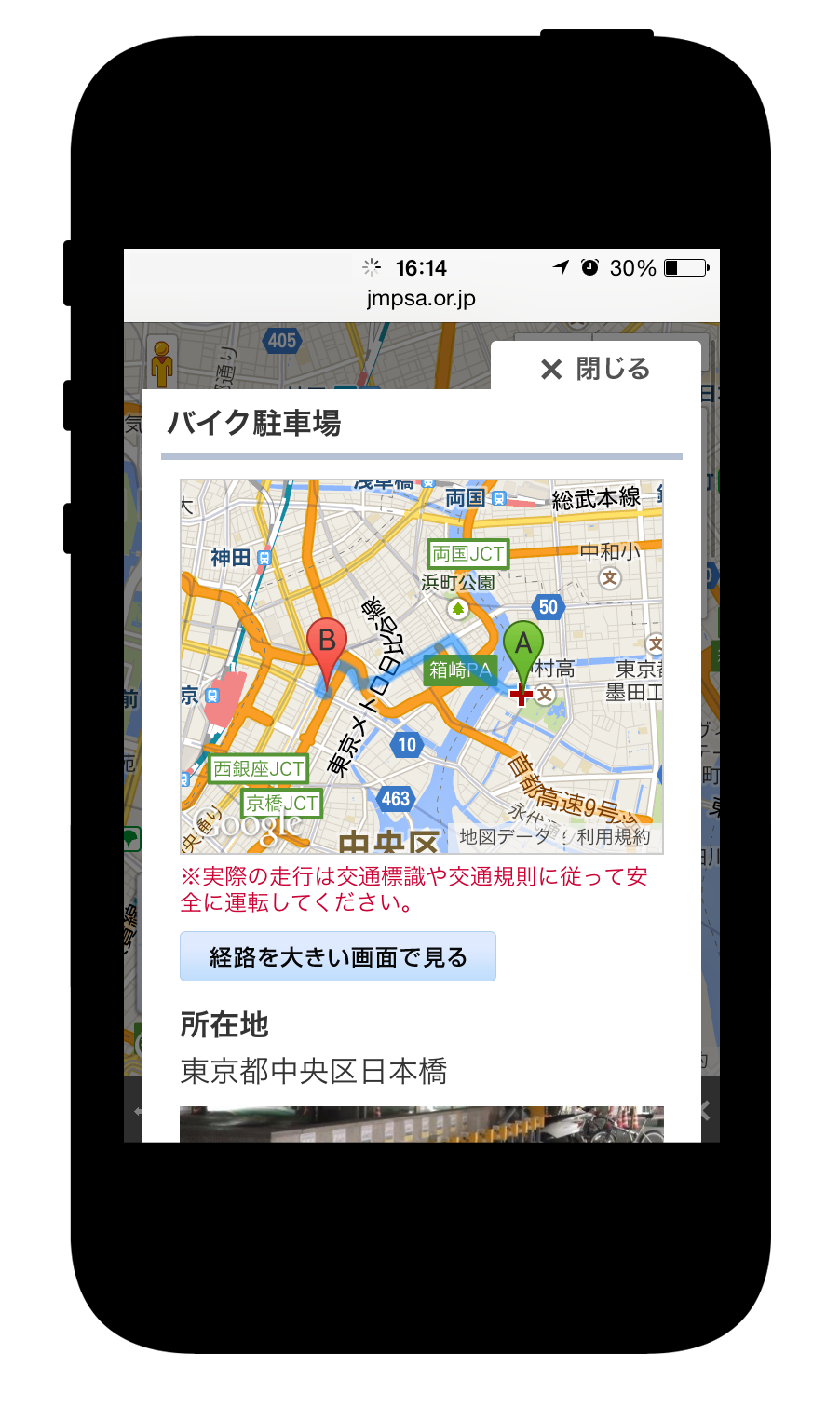 ⇒ Googleマップを利用し、現在地から目的地までのルートを表示!