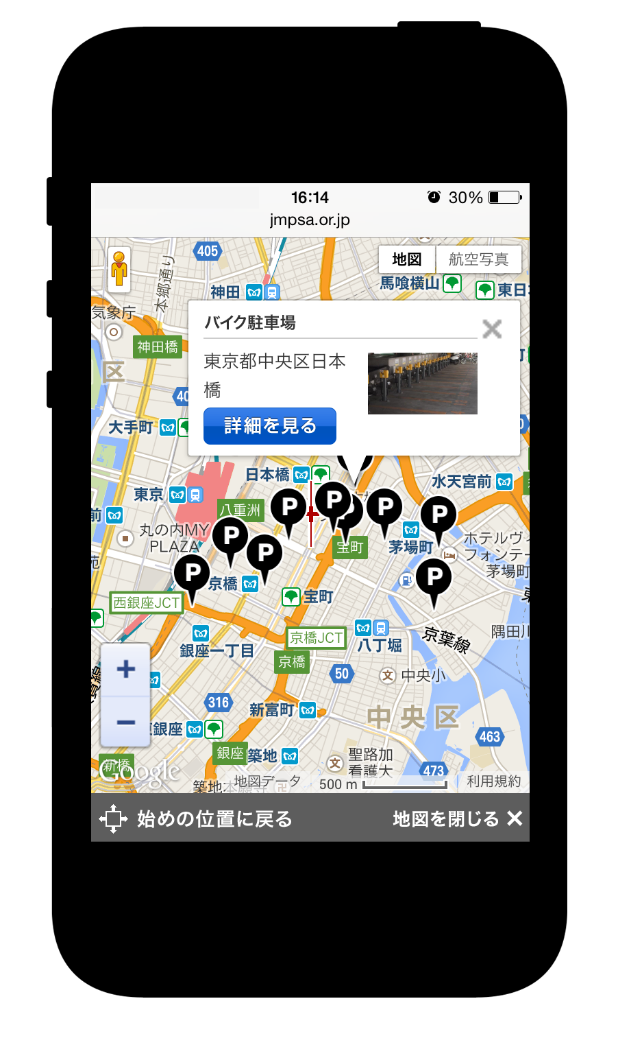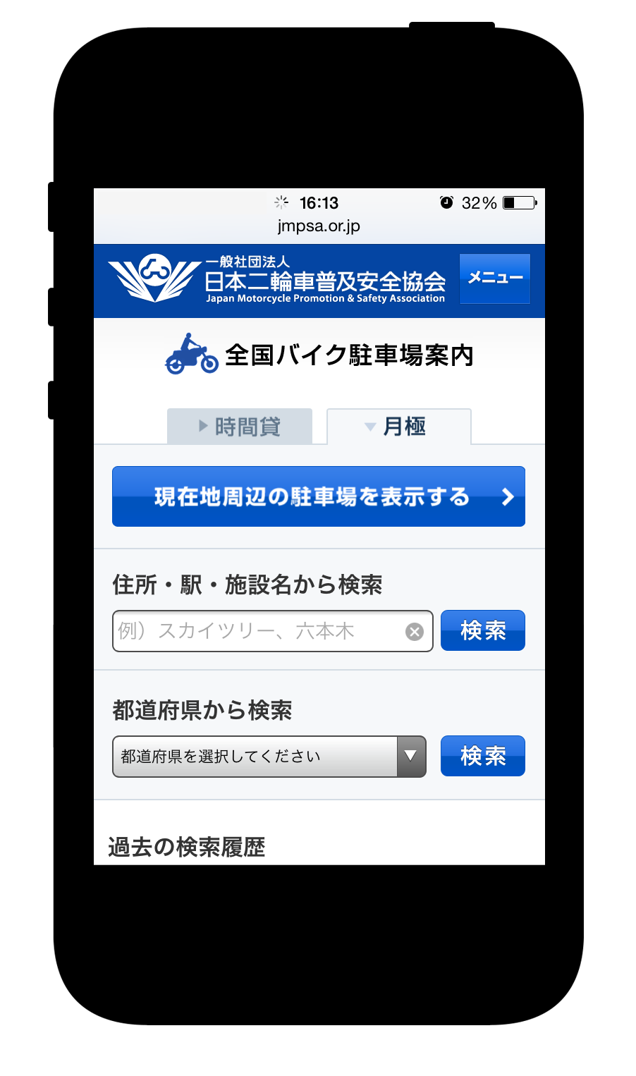 全国バイク駐車場案内サイトにアクセスいただければ、自動でスマートフォンに最適化したサイトに移動いたします。
