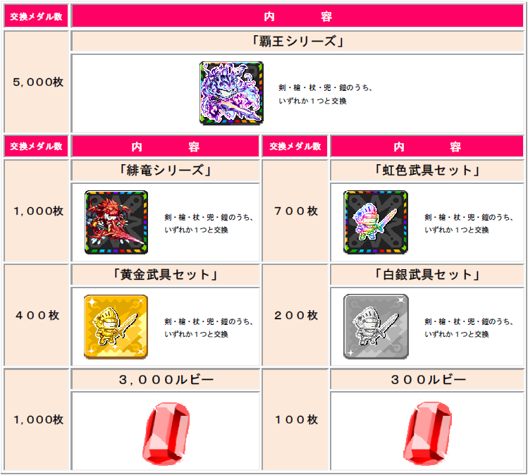 『ドラゴンリーグ』終了後のランキングによって、報酬「ドラゴンメダル」を獲得できます。ドラゴンメダルは一定数集めると、ドラゴンメダルでしか入手できない限定武具やルビーと交換することができます!