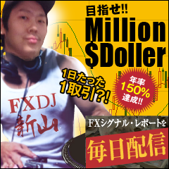 「1日たった1回のトレードで目指せMillion$Doller」をテーマに、FXトレーダーとして活躍しているFXDJ新山が実際に行っているトレードをシグナルにしてメール配信します。