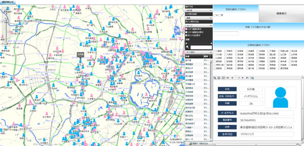 ・住所もしくは緯度・経度情報を入力するだけで、地図上に可視化