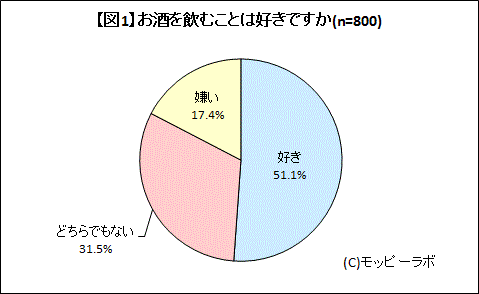 図表参照:【図1】お酒を飲むこと好きか(n=800)