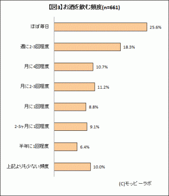 図表参照:【図3】お酒を飲む頻度(n=800)