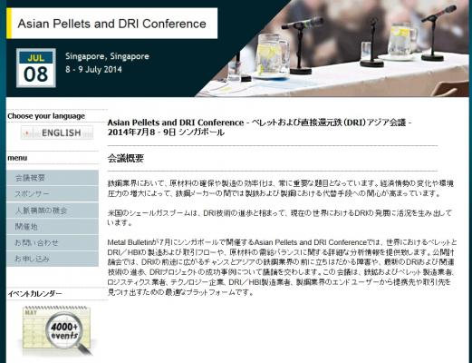 会議:「Asian Pellets and DRI Conference - ペレットおよび直接還元鉄(DRI)アジア会議」
